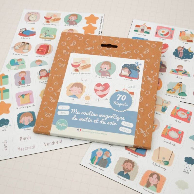 Ce jeu de magnets éducatif accompagne les enfants de 3 à 6 ans+ dans les moments clés de leur journée.