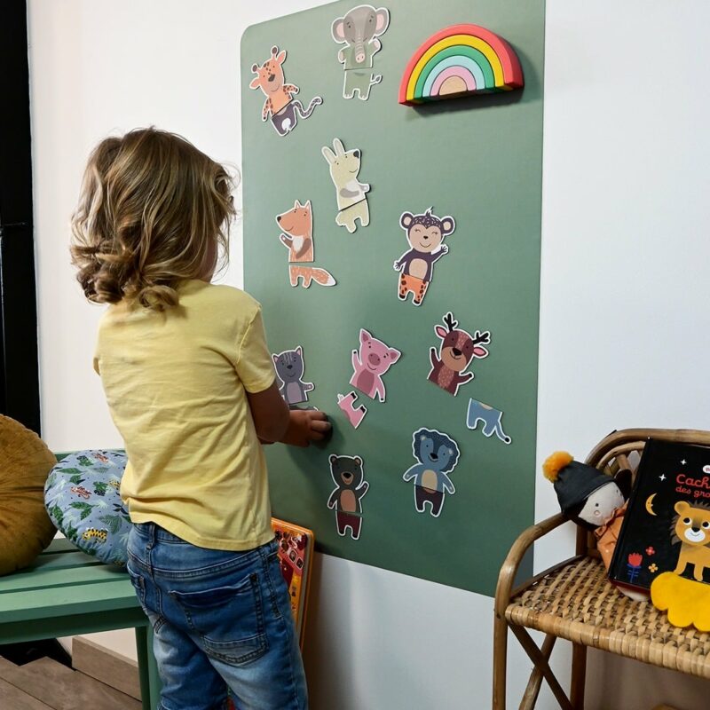 Il s’intègre facilement dans une chambre d’enfant, un coin jeu ou même une cuisine. Vous pouvez y afficher des dessins, des photos, des magnets éducatifs ou des routines du quotidien.