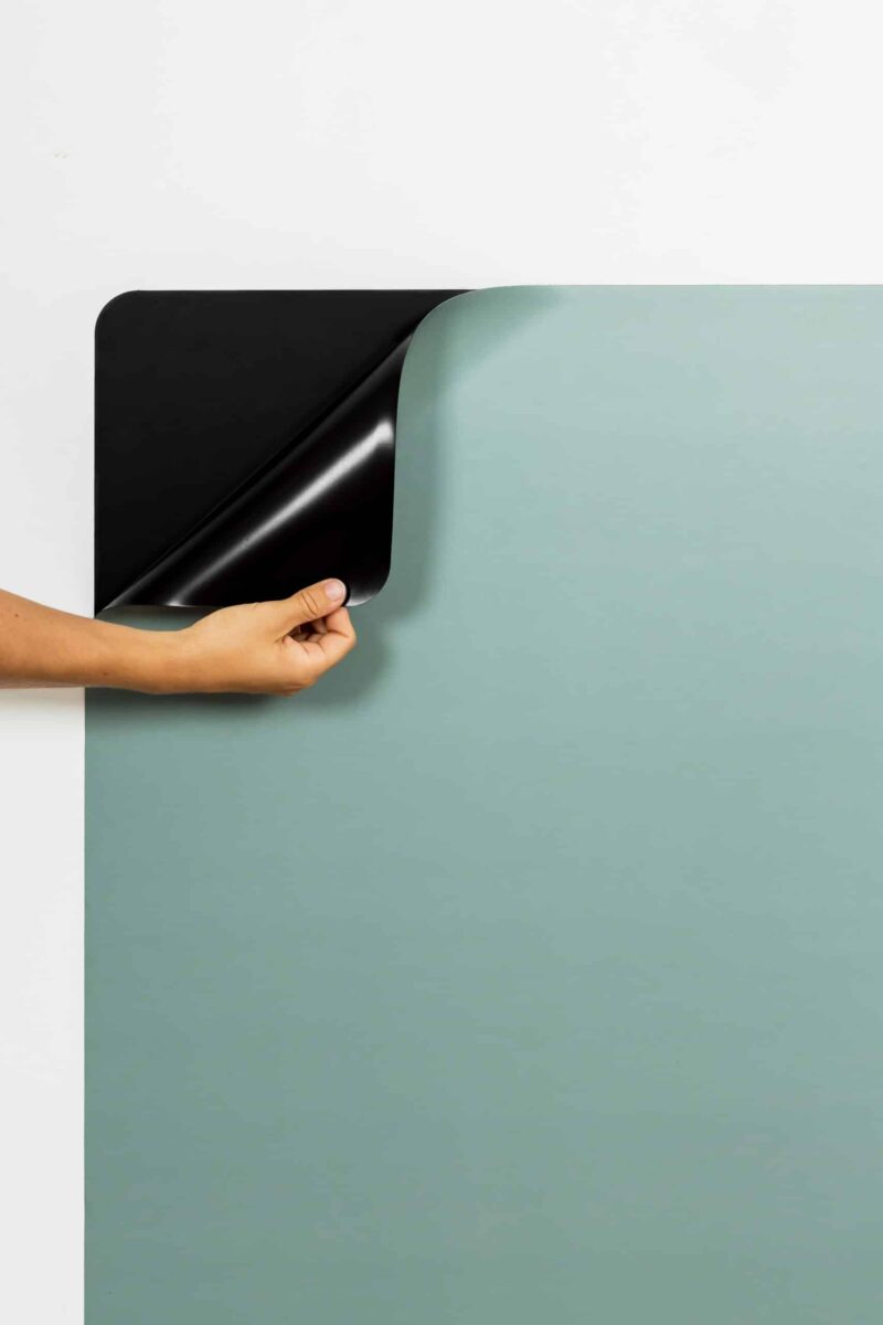 - d’un tableau magnétique noir à coller directement sur un support lisse (mur, porte, meuble…) grâce à un adhésif repositionnable,