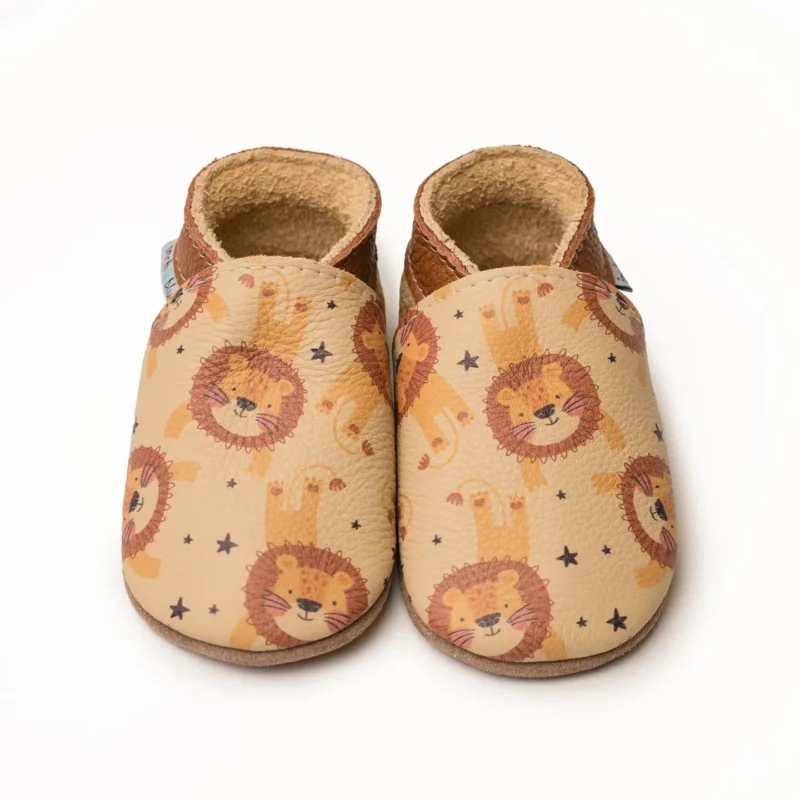 Chaussons modèle « Lions » en cuir.