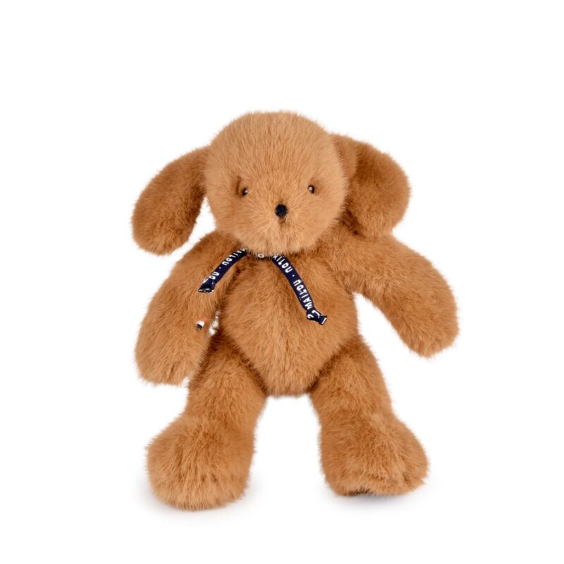 La Peluche Chien caramel Méloé est une création artisanale made in France, confectionnée à la main dans l’atelier breton.