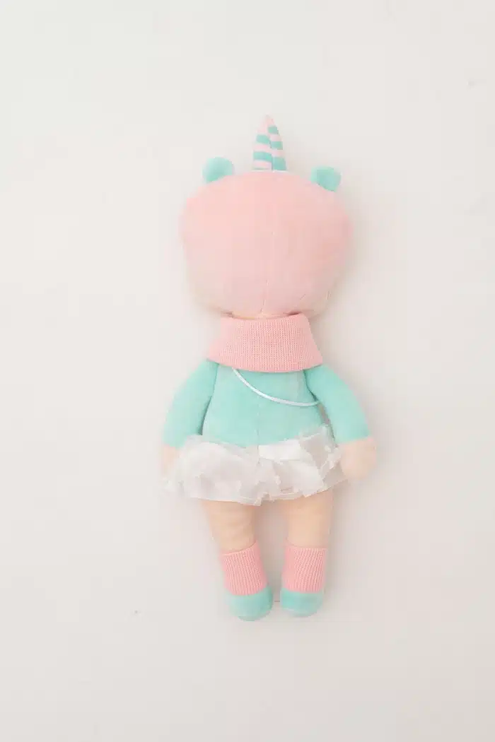 Son joli design avec jupe verte, pochette et petite corne façon licorne en fera la poupée inséparable de votre enfant.
