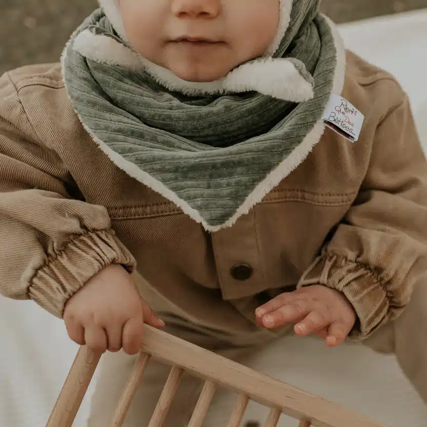 Il permet de protéger le cou des bébés quand il fait froid, très pratique pour vous accompagner en balade.