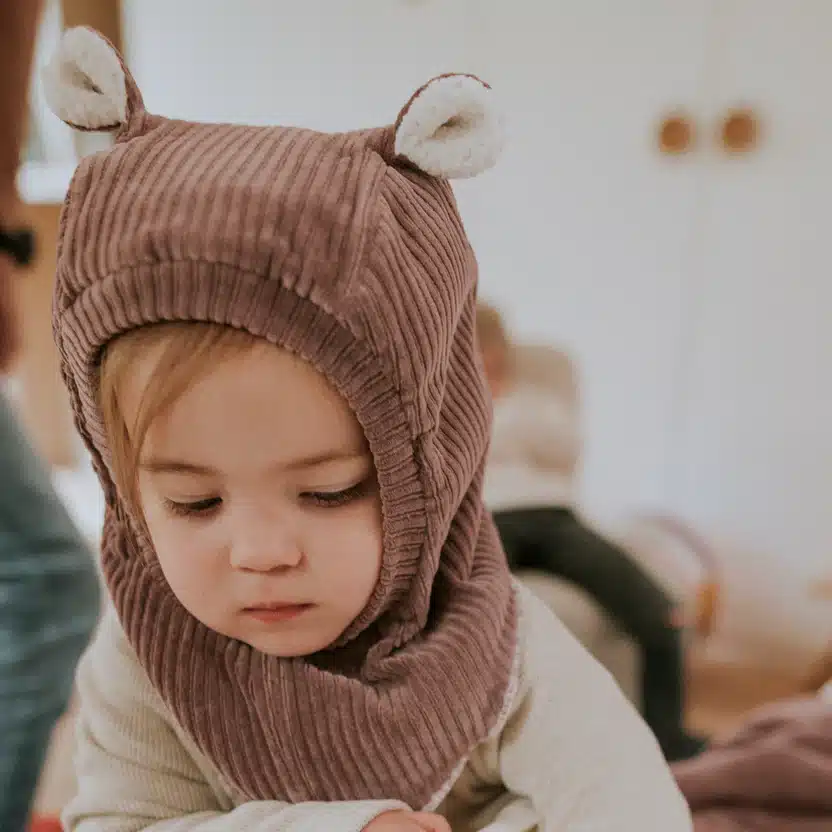 – Cagoule doublé teddy aussi doux qu’adorable.