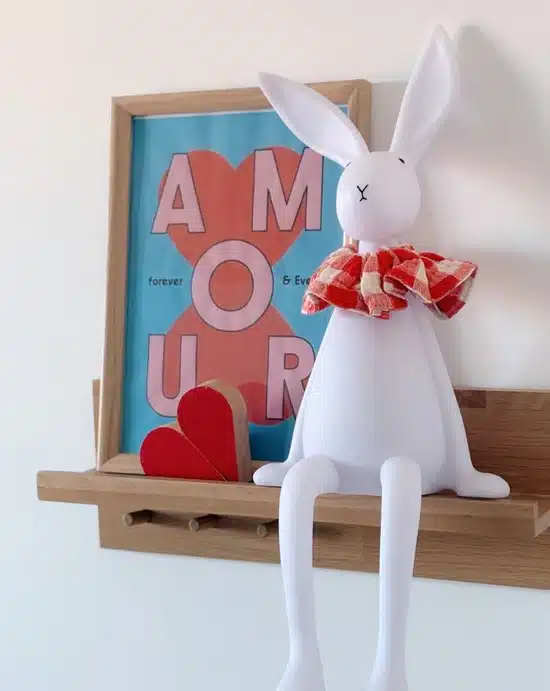 Cette grande lampe se place sur le rebord d’une commode, d’un chevet ou d’une étagère.