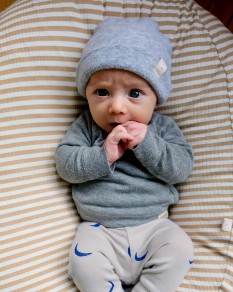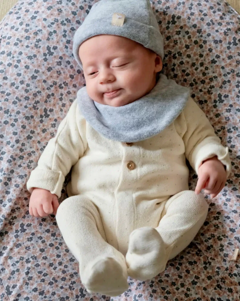 Ce bonnet de naissance mixte sera parfait pour garder votre bébé bien au chaud de sa naissance à ses 1 mois+ environ, afin de réguler sa température corporelle. Il s’adapte aux différents tours de tête grâce à sa maille en éponge naturellement élastique (100% coton bio OEKO TEX, doublé en éponge).