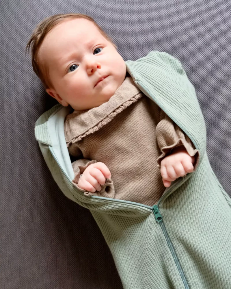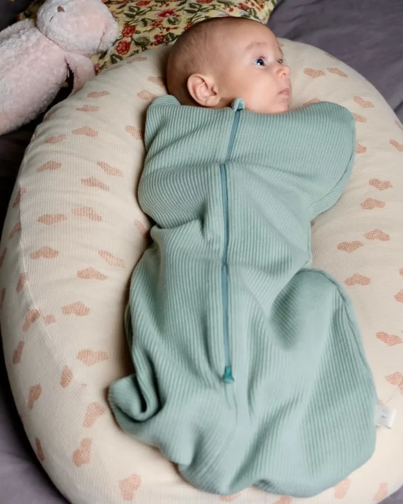 Cette gigoteuse d’emmaillotage de Tante Reine est idéale pour apaiser votre bébé pendant ses phases de sommeil, de sa naissance jusqu’à ses 3 mois.